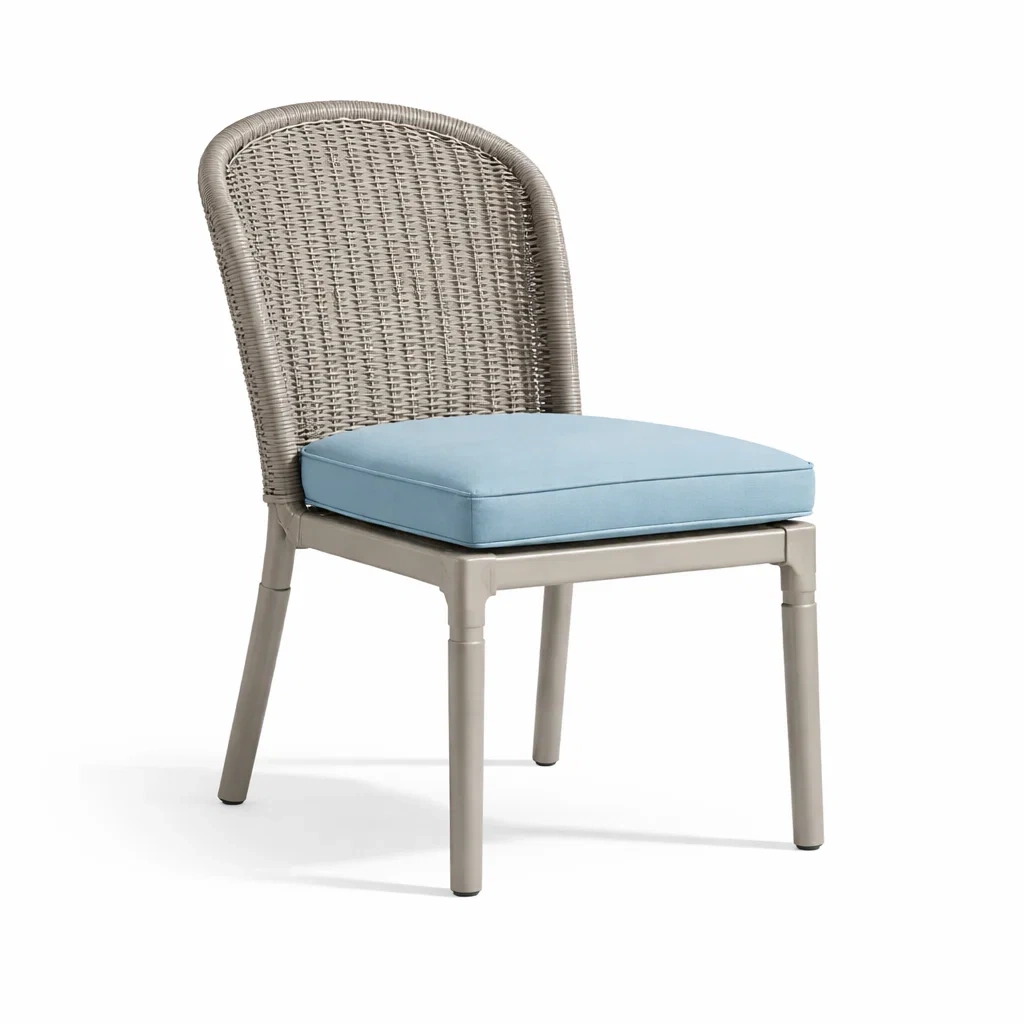 Chaises de salle à manger d’extérieur en aluminium et osier synthétique avec coussin bleu