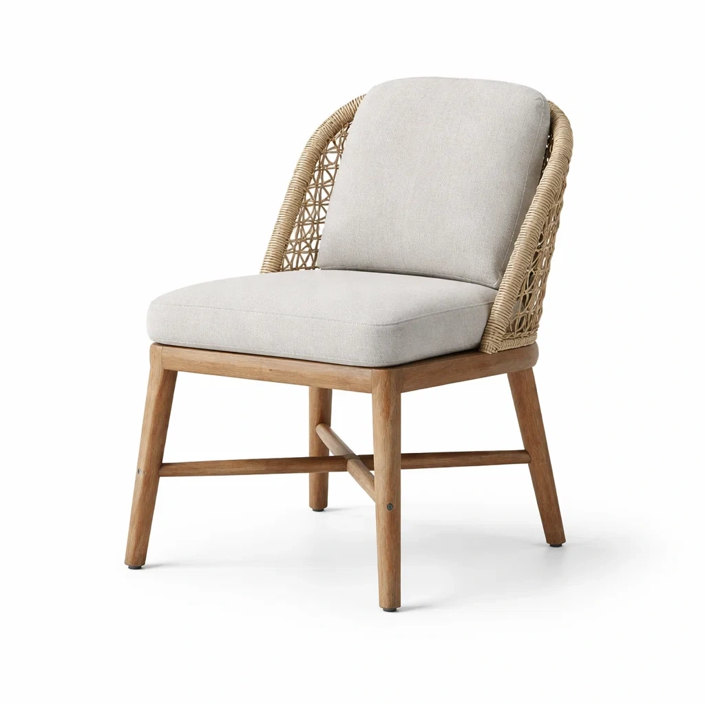 Chaises de salle à manger en rotin avec coussin en tissu beige