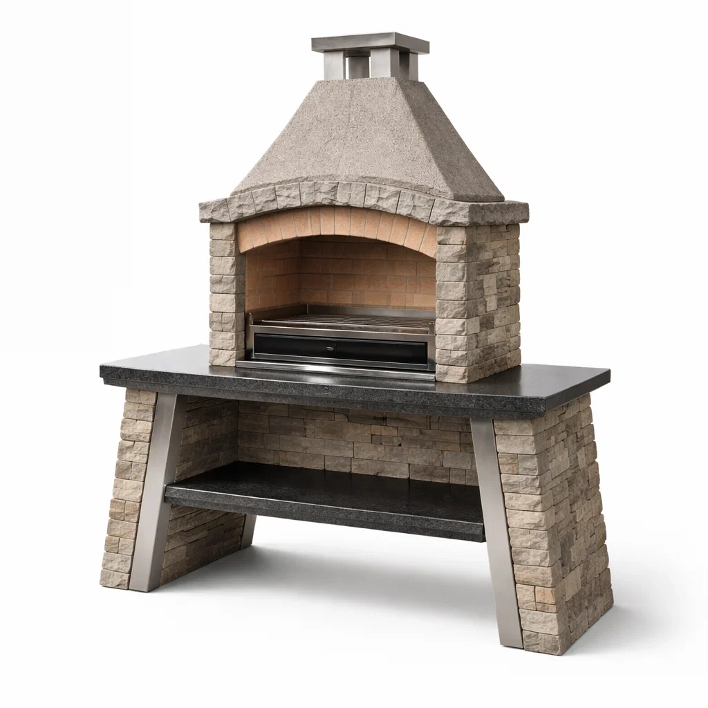 Matériaux : Pierre, acier inoxydable, ciment réfractaire