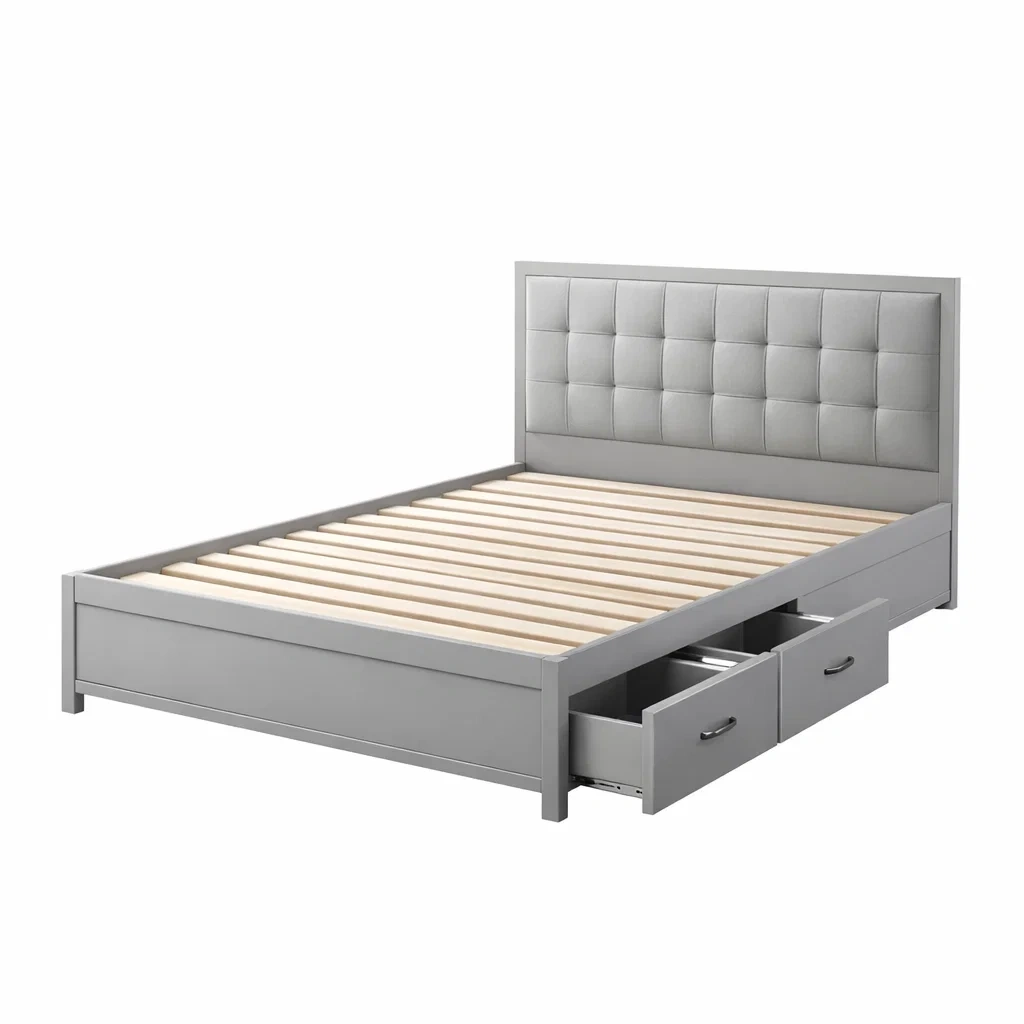 Lit avec rangement en MDF et cuir synthétique avec tiroirs gris