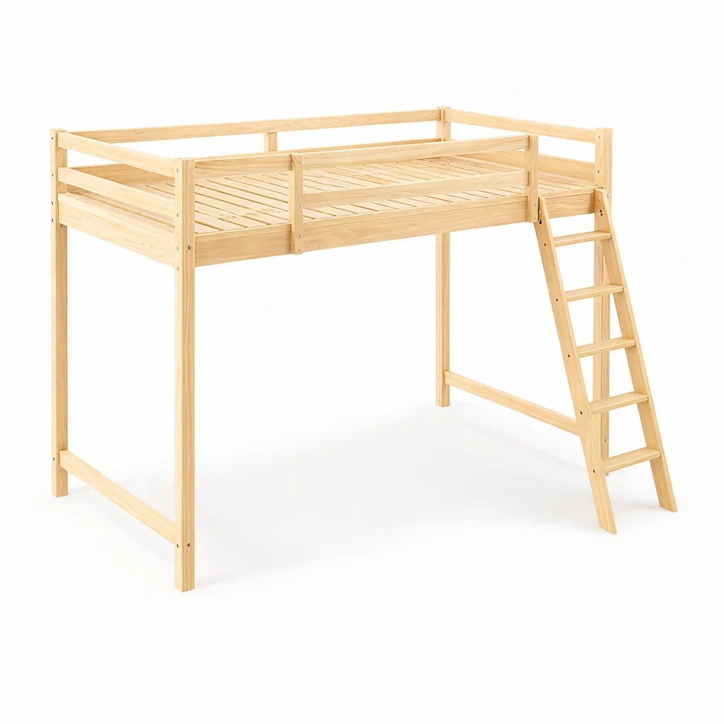 Lit mezzanine en bois de pin naturel avec échelle