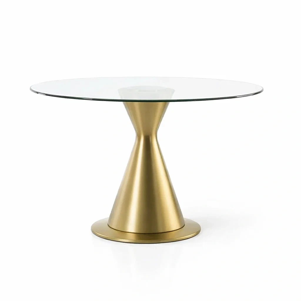 Table à manger ronde en verre trempé et métal doré