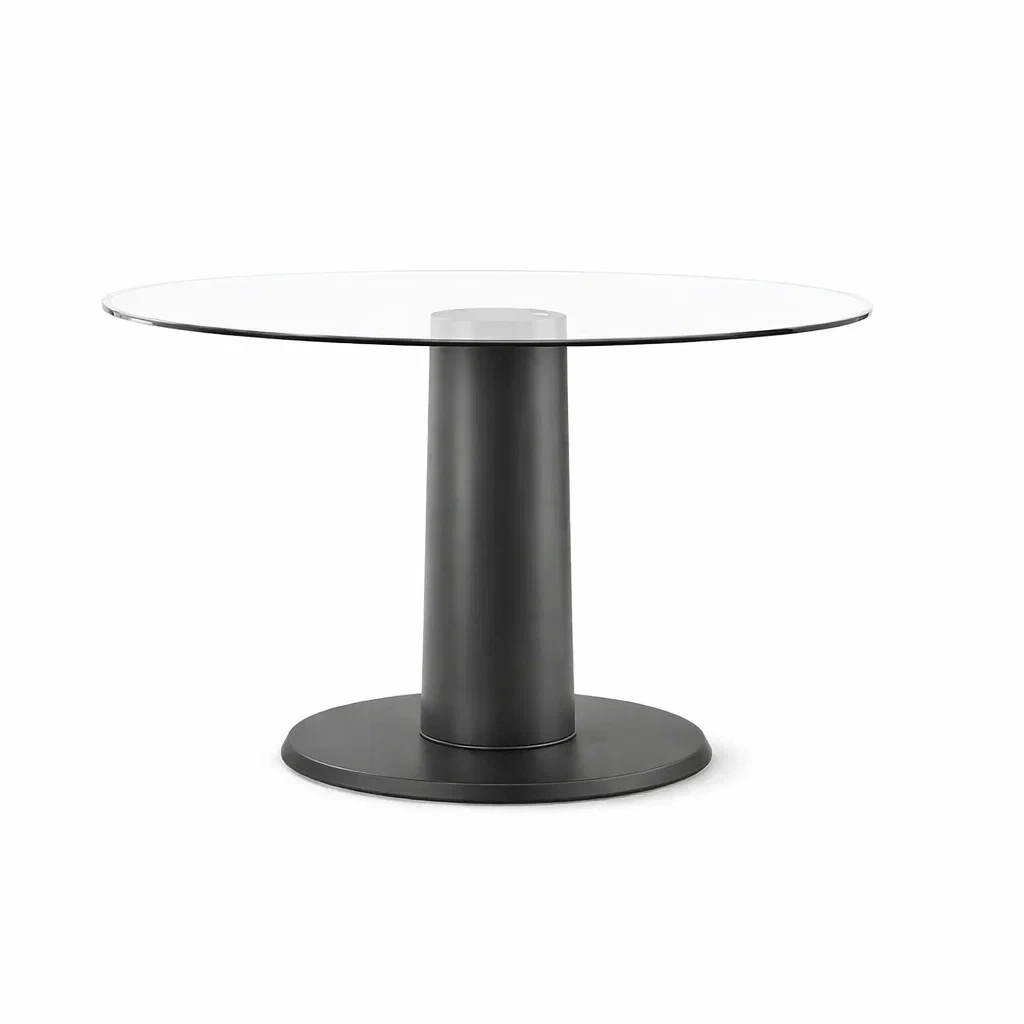 Matériau : Plateau en verre trempé de 10 mm, base en métal peint